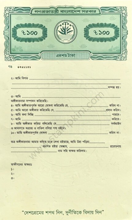 বি.দ্র.: ৫০, ১০০, ২০০ ও ৫০০ টাকা মূল্যমানের বিশেষ আঠালো স্ট্যাম্প ট্রেজারিতে পাওয়া যাচ্ছে।
